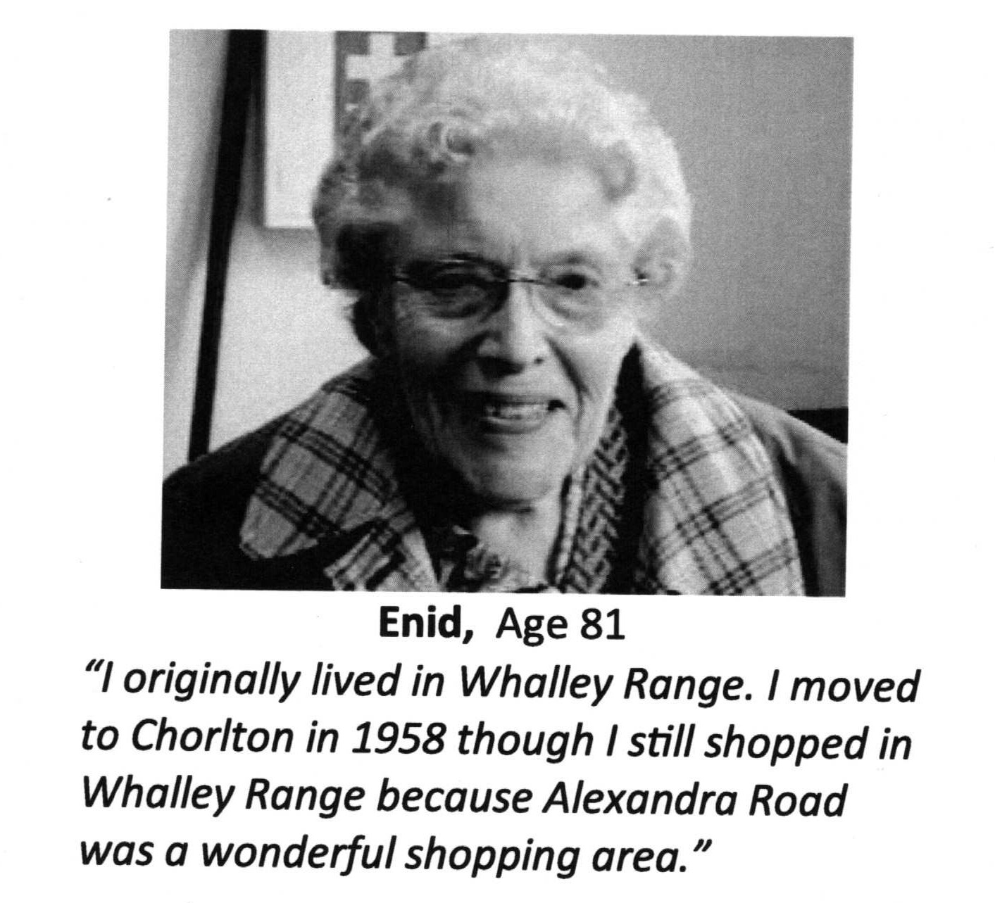 Enid Wood was involved in Chorlton Good Neighbours from its inception over 25 years ago. Here are some of her memories (originally recorded in 2011) of being a volunteer for CGN and of the people she helped. There is a memorial service next week for Enid at St Ninians Church