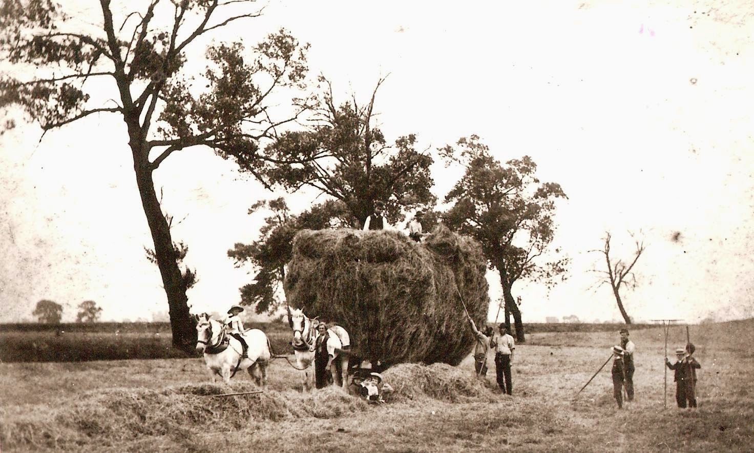Mr Higginbotham and men on the meadows grass used for feeding to livestock in the winter. Hay was produced on an annual cycle which was common to most English floodplain meadows. Relevant local historical records are rather sparse, but those that do exist suggest that the management of the Mersey’s meadows followed the same cycle.
