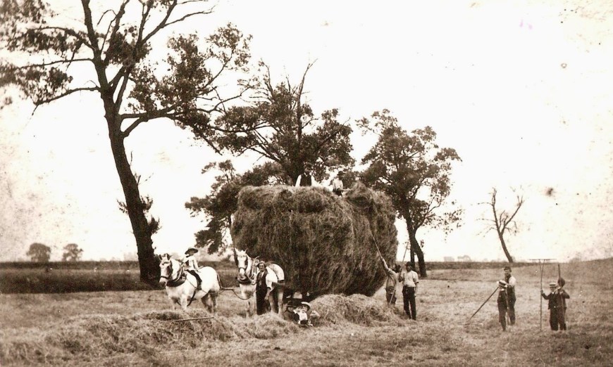 Mr Higginbotham and men on the meadows grass used for feeding to livestock in the winter. Hay was produced on an annual cycle which was common to most English floodplain meadows. Relevant local historical records are rather sparse, but those that do exist suggest that the management of the Mersey’s meadows followed the same cycle.