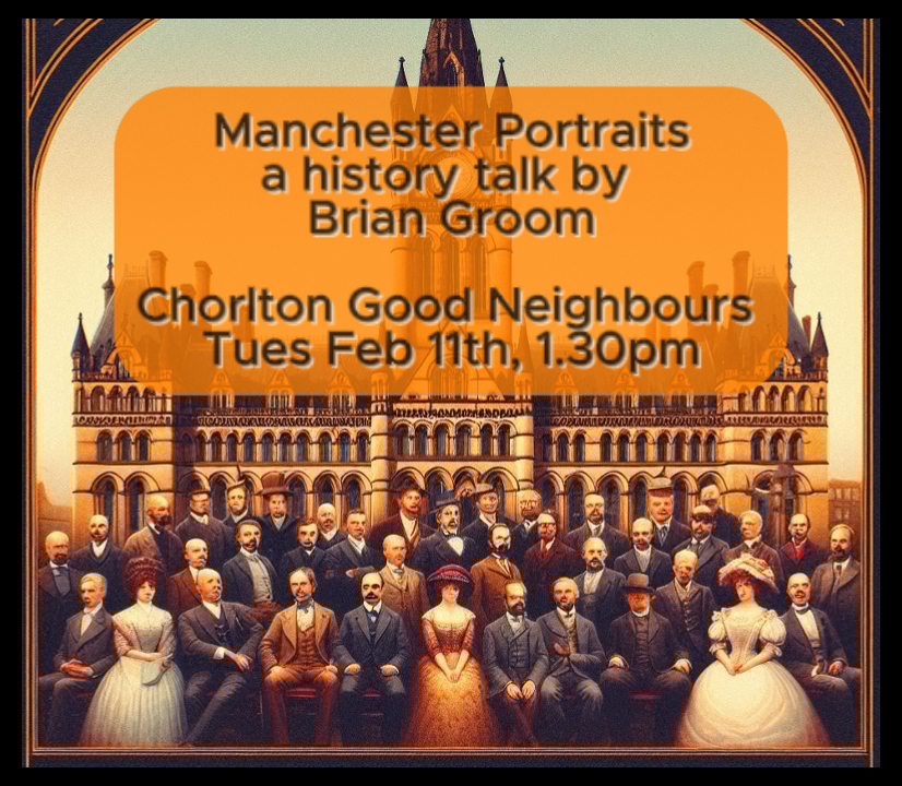 The CGN History talk by Brian Groom “Manchester Portraits” will be held on Tues 11th Feb 1.30pm at St Ninians Church. There is a £3 charge which includes a tea or a coffee