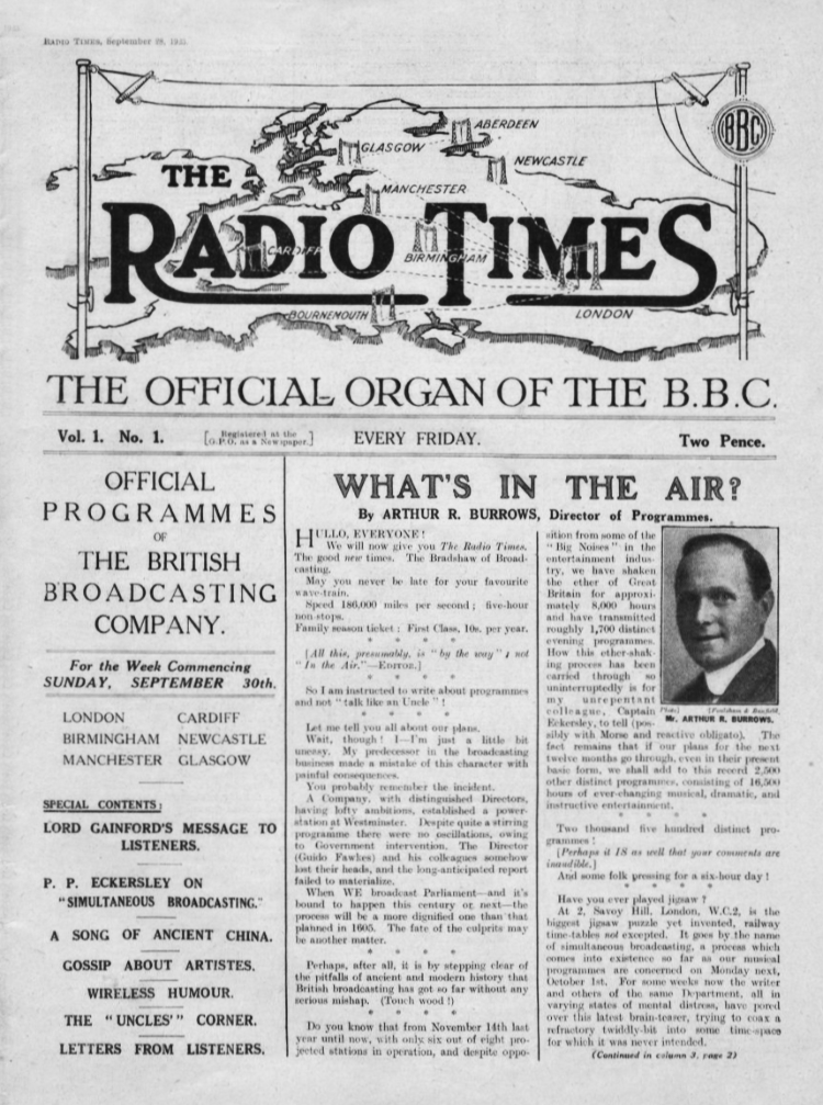 Test transmissions began on 17 May 1922, with regular broadcasts starting on 15 November 1922—just one day after London’s 2LO station.