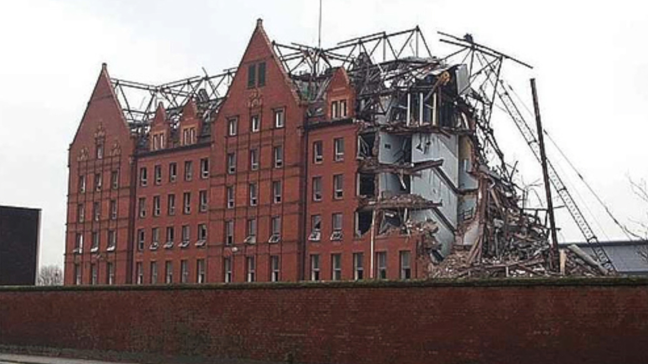 GEC’s decision to end turbine manufacturing at Trafford Park in the early 1990s led to the demolition of the Metrovicks building’s through out the 1990s, By 2002 there were only a few remnants remaining