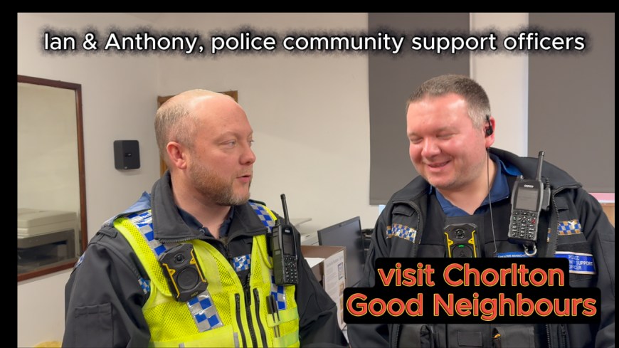 Ian and Anthony, two local Police Community Support Officers visited Chorlton Good Neighbours coffee mornong on Thursday 20th Feb 2026, They chatted with people and here explain what their role is in Chorlton and Whalley Range