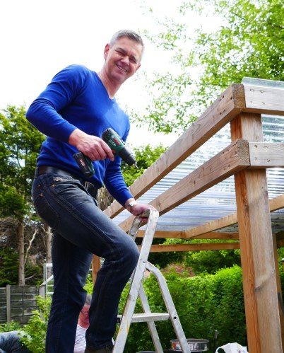 Michael, putting up a shelter in the CGN garden